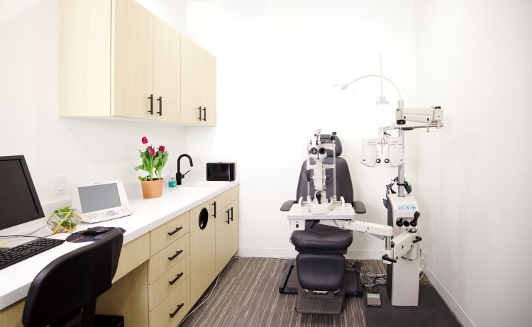 With the two doctors splitting time at the practice, one exam lane has been fully equipped and there is space for two more as the practice grows. Additional features include a contact lens insertion/removal area, a lab with in-house edger, two restrooms and a staff breakroom.